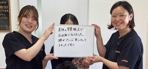 「産後の骨盤矯正でお世話になりました。腰がだいぶ楽になってよかったです!!」