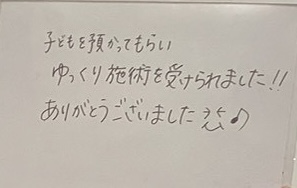 施術中もそばにいられるから、小さなお子さまがいるお母さんも安心です。
